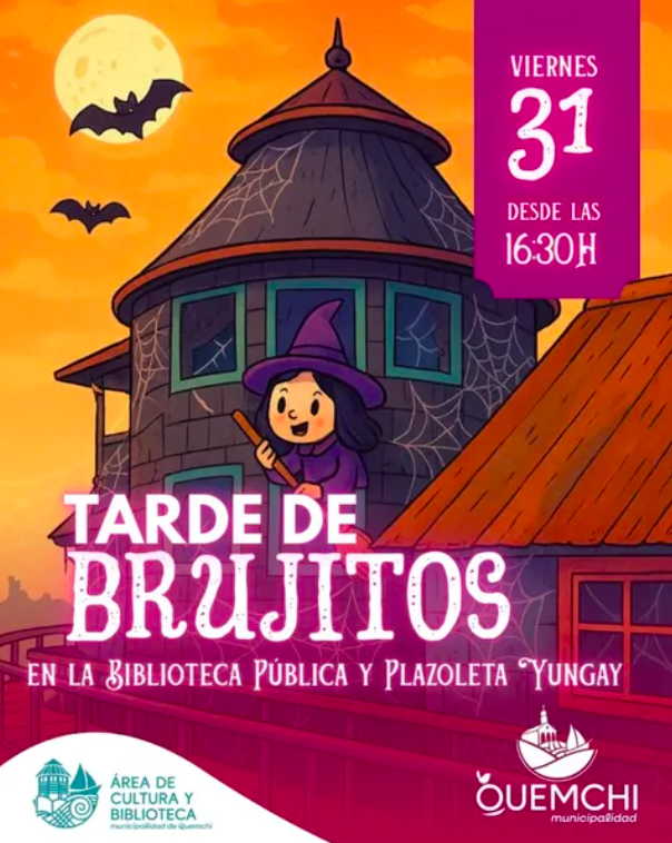 #TardeDeBrujitos #HalloweenQuemchi #BibliotecaPública #CulturaQuemchi #InfanciaQuemchi #TerrorEnYungay #BrujitosYMonstruos