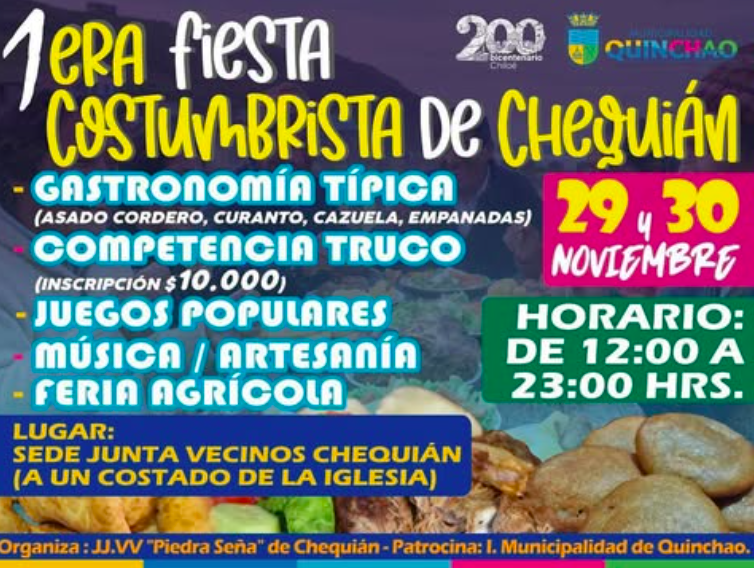 Este 29 y 30 de noviembre los invitamos a ser parte de la PRIMERA FIESTA COSTUMBRISTA DE CHEQUIÁN!