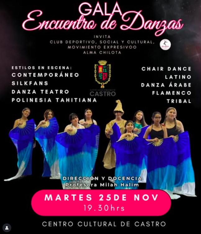 🗓️Martes 25 de noviembre 🕘 función: 19:30 hrs. 📍 Lugar: Teatro del Centro Cultural de Castro Organiza: Alma Chilota y Milah Halim Apoya: Ilustre Municipalidad de Castro