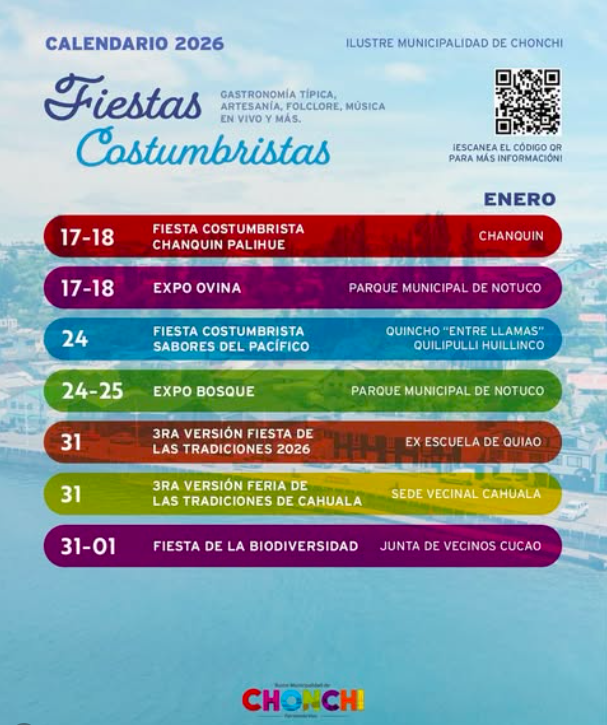 Los eventos forman parte de la programación local y buscan mantener vivas las tradiciones, la historia y la cultura del territorio, ofreciendo experiencias representativas de la vida comunitaria de Chonchi.