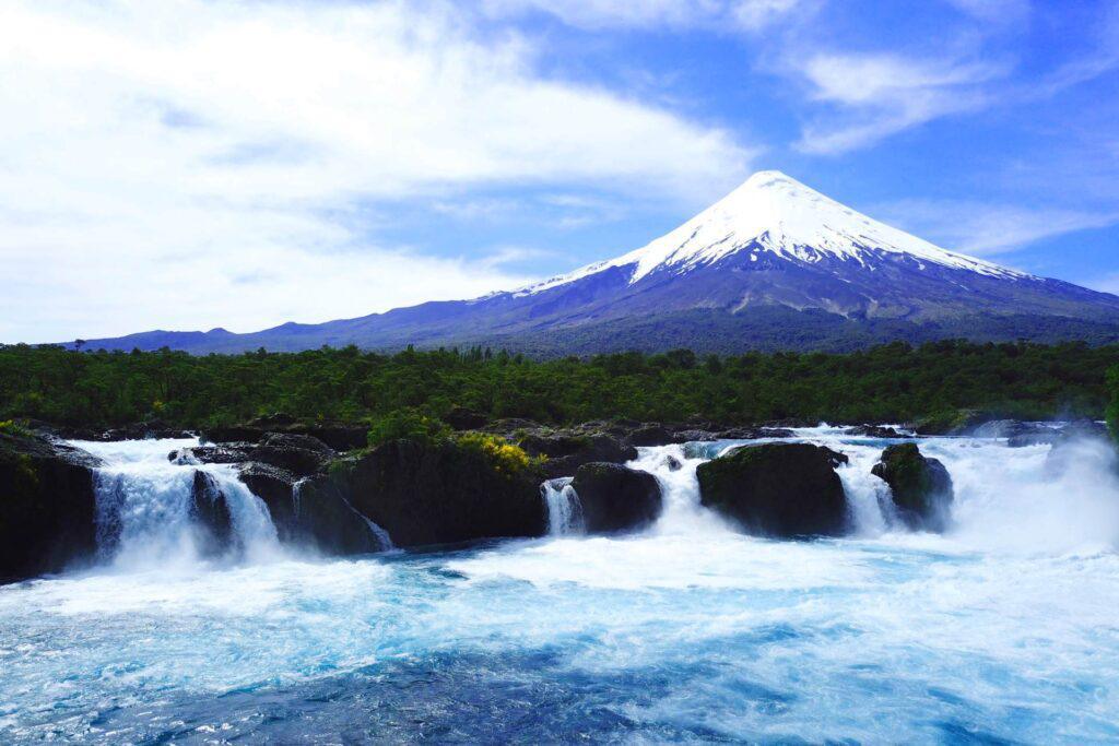 Los Saltos del Petrohué, ubicados en el corazón del Parque Nacional Vicente Pérez Rosales, son uno de los tesoros naturales más visitados y admirados de la Región de Los Lagos. Formados por las aguas cristalinas del Río Petrohué —alimentadas por el Lago Todos los Santos— estos saltos sorprenden con su color turquesa, su fuerza y el contraste con las rocas volcánicas del entorno.