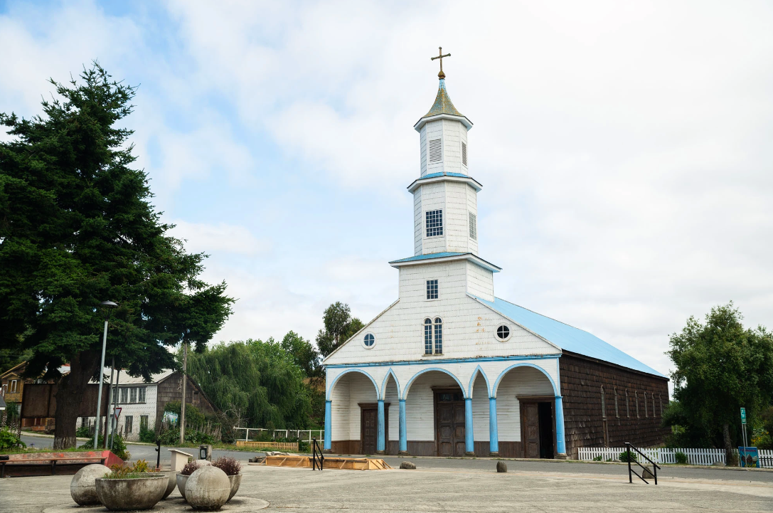 Combina diferentes estilos y está construida con diversas maderas nativas, como tepa, ulmo, tineo y alerce. Destaca su colorida bóveda de crucerías, característica de la arquitectura gótica. Estas bóvedas se construyen mediante la intersección de dos o más arcos que se cruzan y se entrelazan en el techo, creando una estructura compleja y muy decorativa.