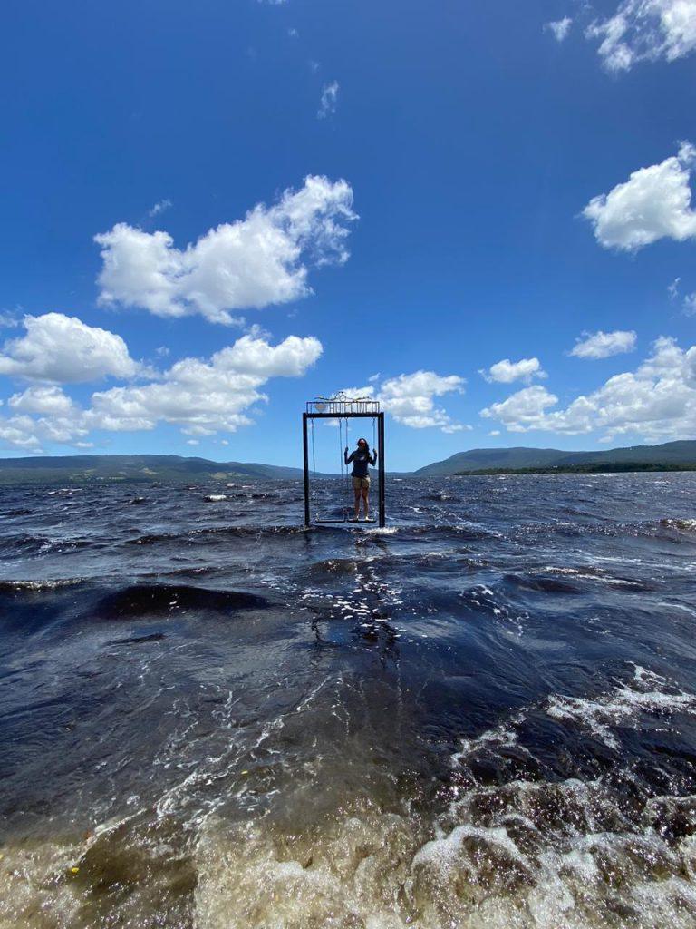 Puedes estar lejos de mis ojos pero no de mi corazón. Esta es una de las citas que se pueden encontrar escritas en el columpio situado en el Lago Huillinco, la historia de amor que hay detrás hace este un punto infaltable a la hora de visitar la isla. La pareja se caracteriza por el romanticismo y la idea de contruirlo surge como obsequio de aniversario, ella disfrutaba de la lectura en las orillas del lago, tan sólo en nueve días tardo en contruirlo con la finalidad que pudiera hacer su actividad favorita en él.